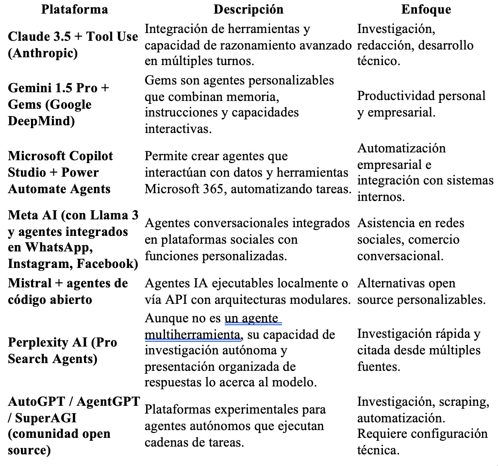 ChatGPT Agent marca un nuevo paradigma: asistentes que ya no solo responden, sino ejecutan procesos completos, con continuidad y lógica, en nombre del usuario o de la empresa. La competencia en este segmento es abundante y creciente, desde el pionero chino Manus hasta un nutrido grupo de «sospechosos habituales».